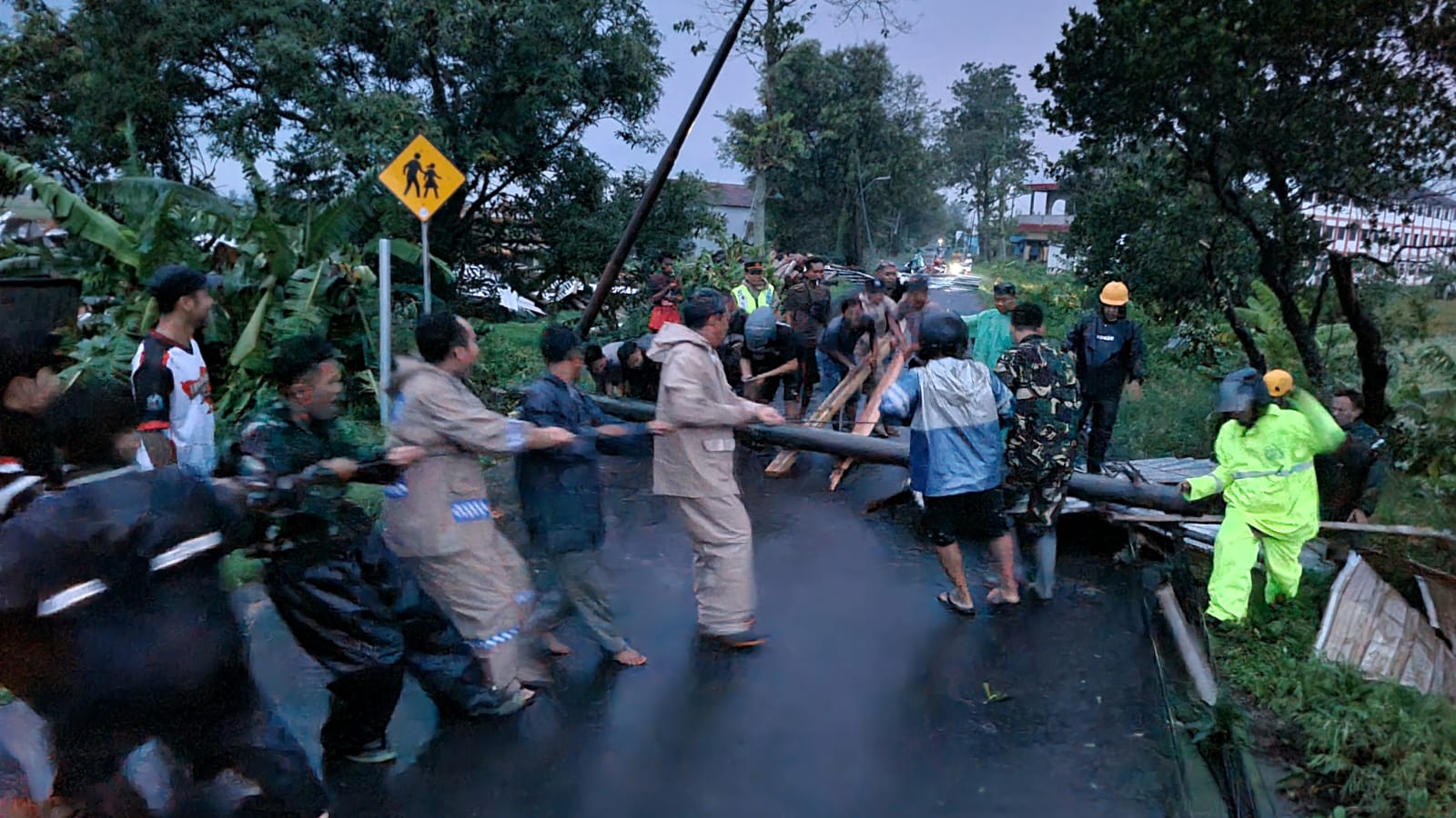 “Langkah-langkah yang diambil adalah mendatangi TKP dan segera melakukan evakuasi material pohon serta tiang listrik agar akses jalan kembali normal. Kami bekerja sama dengan masyarakat, Koramil, dan BPBD,” tambah Ipda Warsito.
