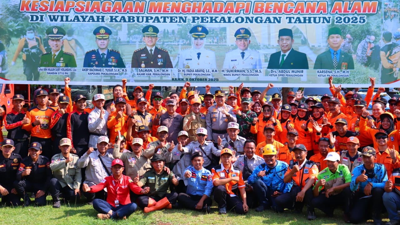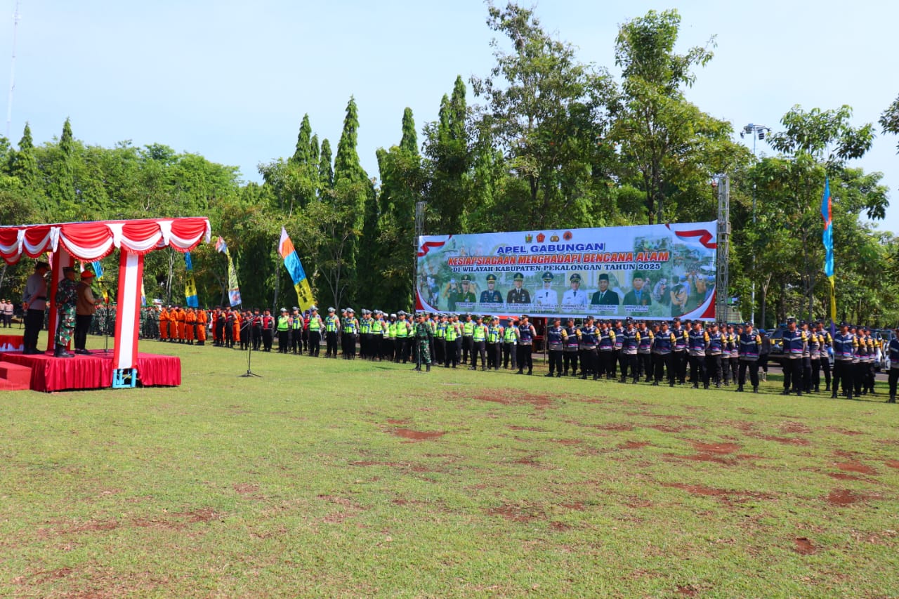 Polres Pekalongan – Polda Jateng – Menghadapi potensi bencana alam di musim penghujan, Kapolres Pekalongan AKBP Rachmad C. Yusuf, S.I.K., M.Si., bersama jajaran Forkopimda Kabupaten Pekalongan menghadiri Apel Gabungan Kesiapan Menghadapi Bencana Alam yang digelar di Lapangan Sekda Kabupaten Pekalongan, Kamis pagi (09/10/2025).