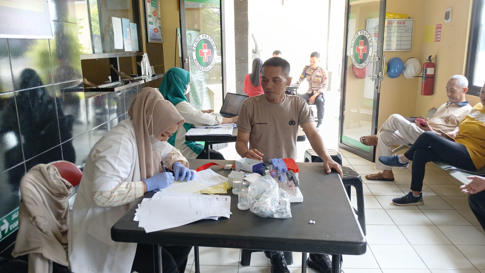 Tak hanya pemeriksaan luar, tim medis Sie Dokkes juga melakukan pengambilan sampel darah dan urine untuk keperluan laboratorium sederhana. Hal ini dilakukan guna memantau secara detail kondisi kesehatan peserta, terutama terkait penyakit degeneratif.