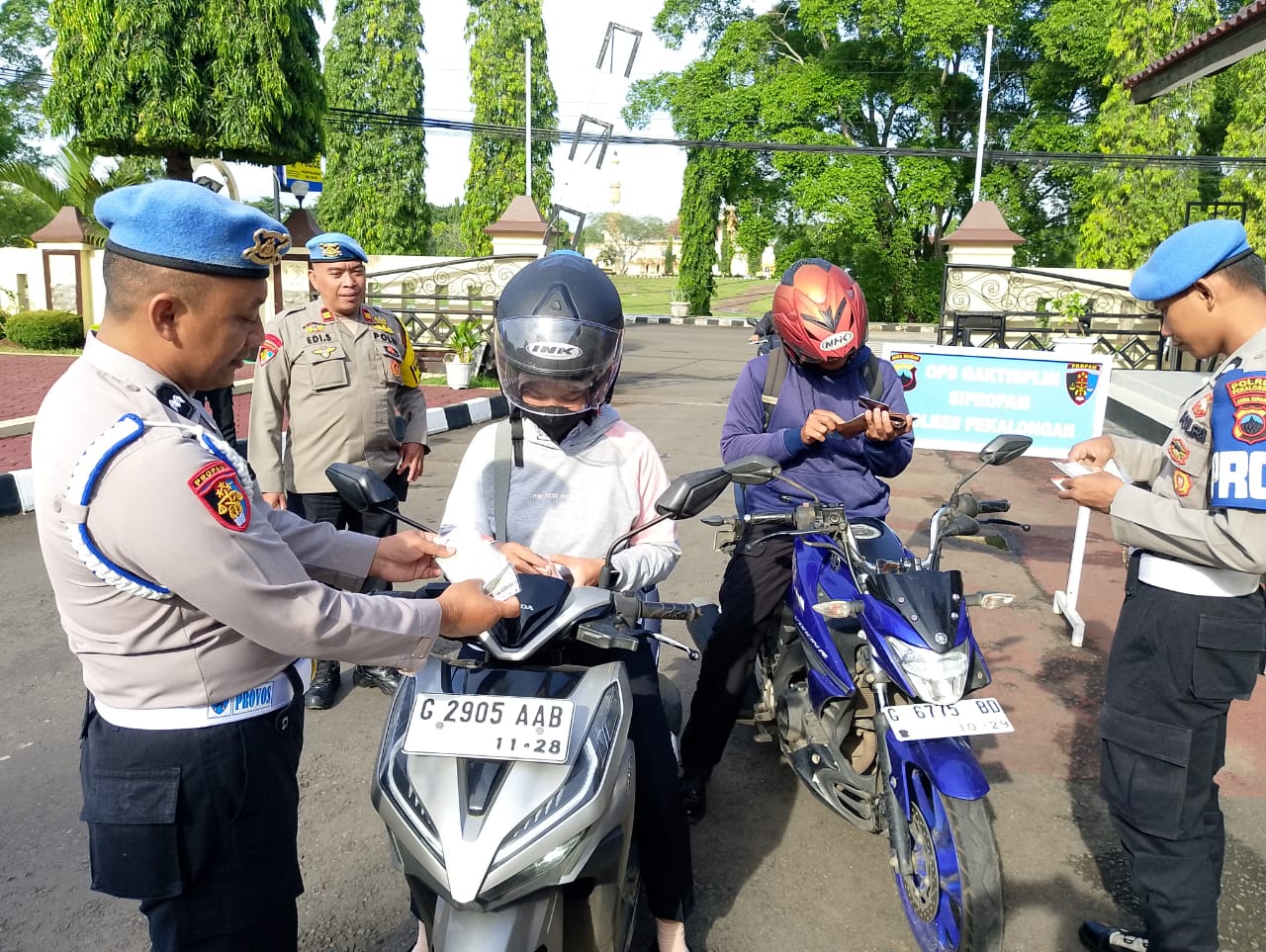 Kegiatan mendadak ini dilaksanakan di pintu masuk utama Mapolres Pekalongan, tepatnya di depan kantor SPKT, menyasar seluruh kendaraan dinas dan pribadi milik personel Polri.